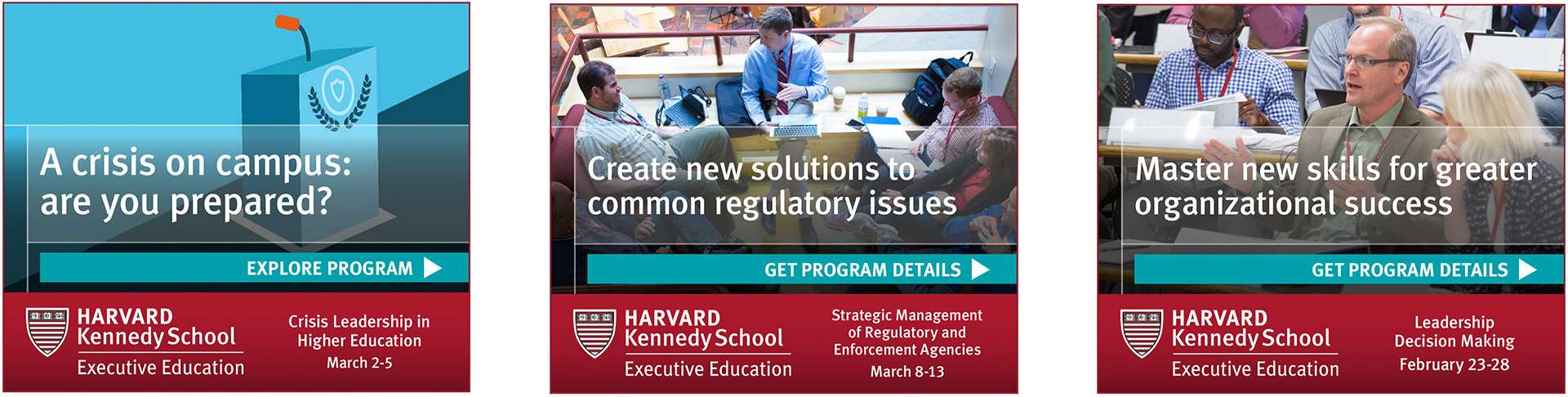 Harvard Kennedy School Executive Education recruits in more than 65 countries and across the U.S., to attract ambitious men and women who want to lead policy development in government, non-profits and private organizations. We developed new target segmentation focused on seven unique audience profiles, and shifted to a mobile and online strategy that fits the media habits of a global audience. Our trackable campaign analytics have allowed us to exceed application quality and numbers year after year.