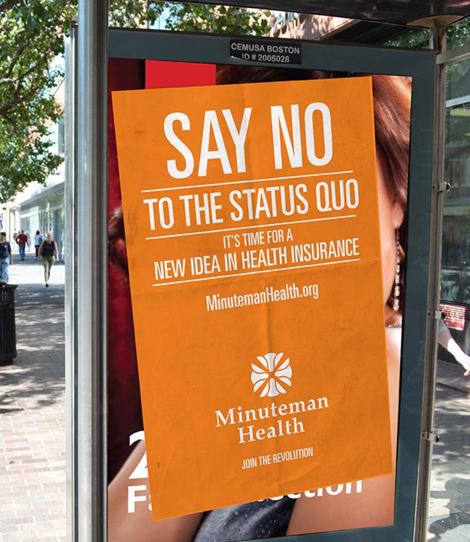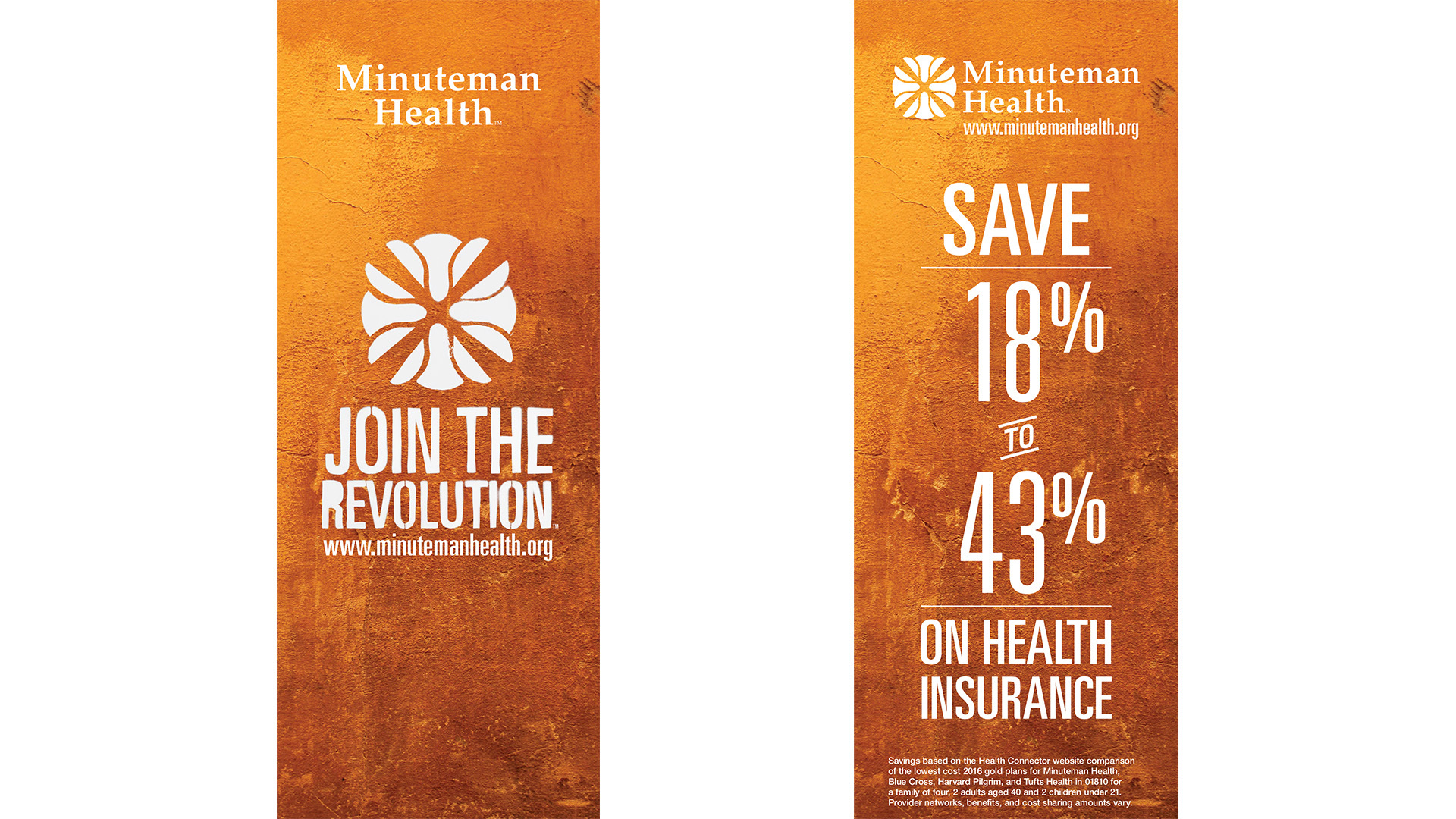 Created under the Affordable Care Act, Minuteman Health was designed to unite doctors, hospitals and members on the same team to provide efficient quality care and share reduced costs. A revolutionary approach. The client told us to "stir up some dust" to get attention quickly and attract members, and we did. Target audience analytics led to high-visibility transit, out of home, and focused TV in select sports programming. With 98% of Massachusetts already insured, Minuteman Health exceeded goals in both Massachusetts and New Hampshire.
